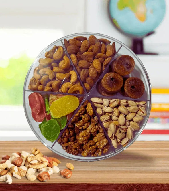 In a world filled with sugary treats and standard gift baskets, a Dry Fruit Gift Box stands out as a health-conscious, sophisticated choice for any occasion. With 5 distinct compartments, each brimming with high-quality dry fruits like almonds, pistachios, walnuts, cashews, and kishmish (raisins), this gift box provides a touch of elegance and a wealth of nutrition. Featuring a premium design of glass and plastic that both preserves and presents the contents beautifully, this 2.2 kg dry fruit box makes an ideal gift for loved ones, colleagues, and health-conscious friends.